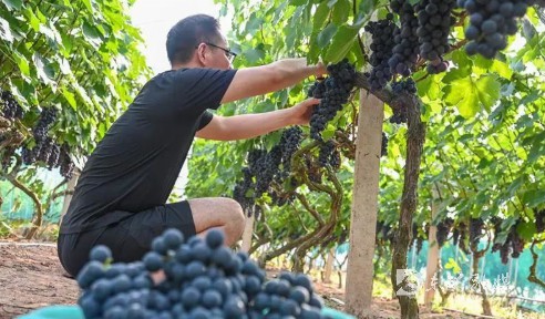 时间:2022-07-04 11:11:39 来源:掌上东兴时值盛夏,葡萄成熟。内江市东兴区田家镇三元村9组的韩娟葡萄园里,夏黑葡萄挂满枝头,长势喜人,果农们忙着修剪枝叶、疏果,棚内一片忙碌景象。