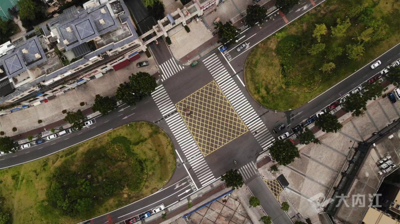 近日,记者在该小区(一期)南门路口看到,这里大面积的空地已经施划了斑马线和黄色网状线,斑马线周围还安装了硬质隔离护栏和U型护栏,实现了人车分流,现场交通秩序得到明显改善。