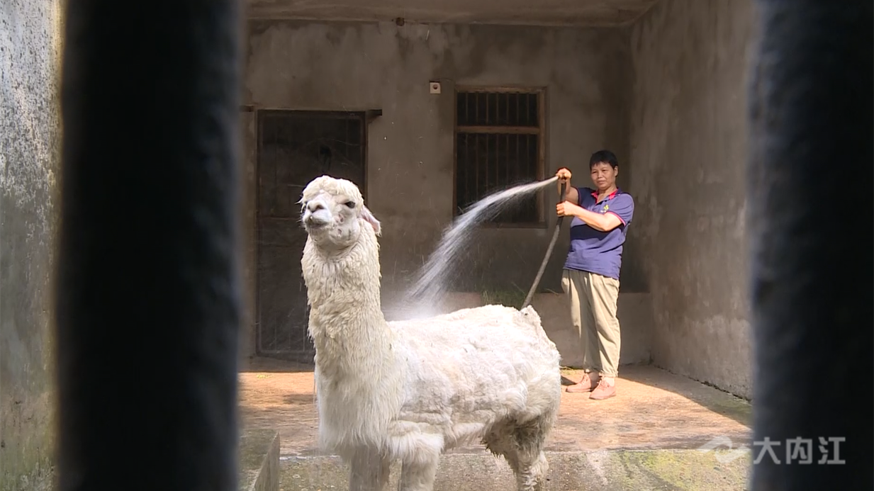 ▲给羊驼洗澡降温