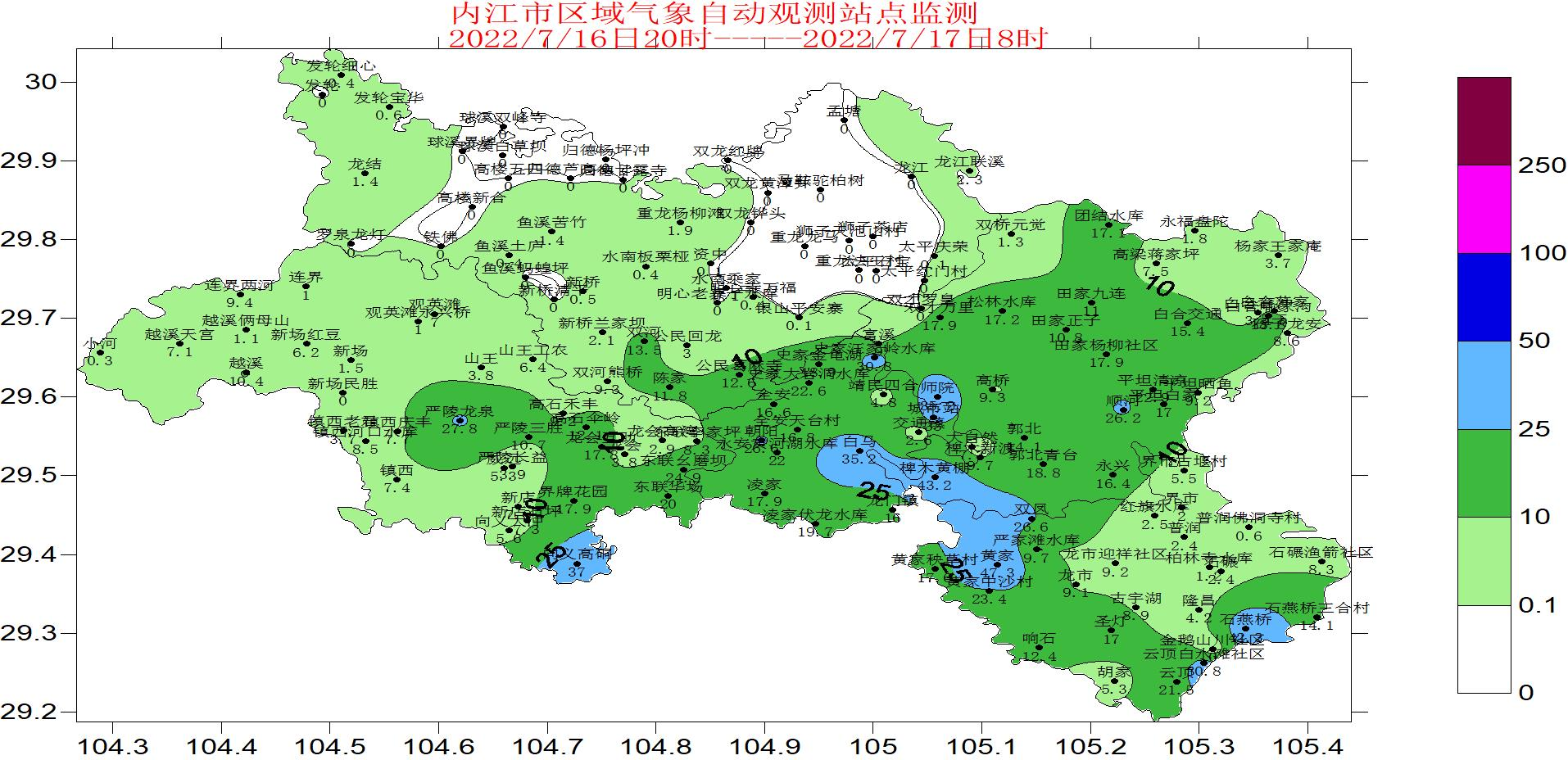 隆昌:黄家44.5毫米,石燕桥36.5毫米,云顶白水滩社区29.4毫米,双凤25.7毫米。