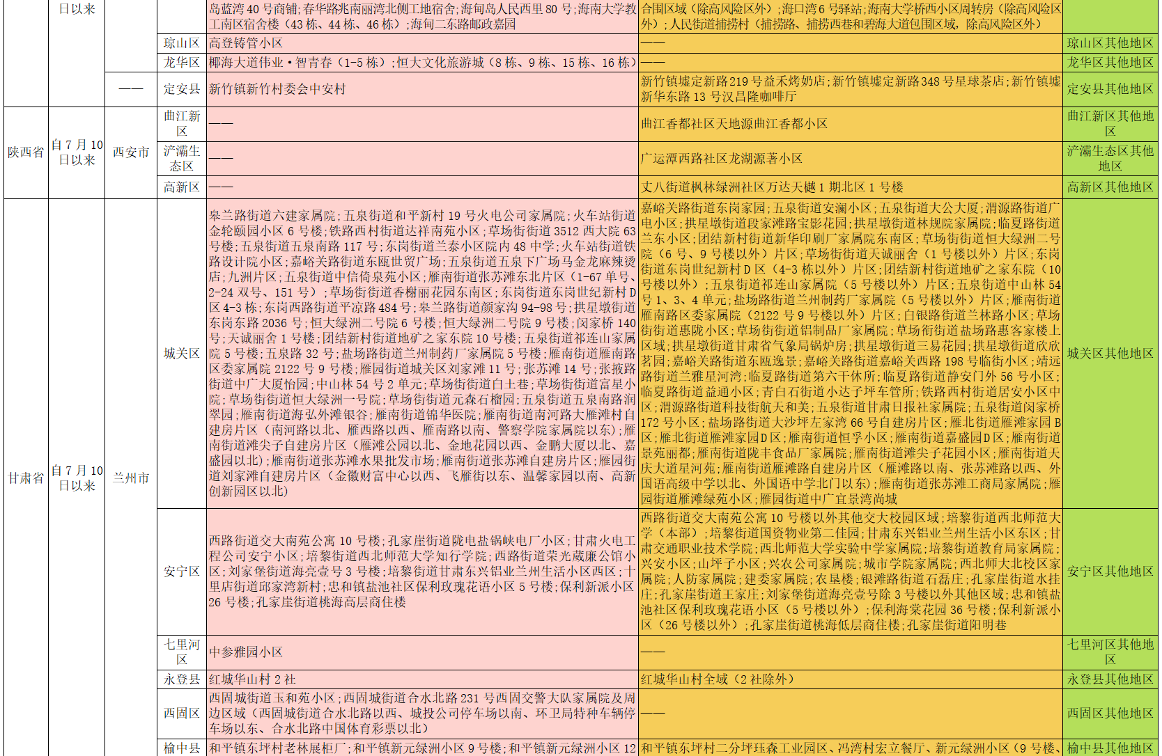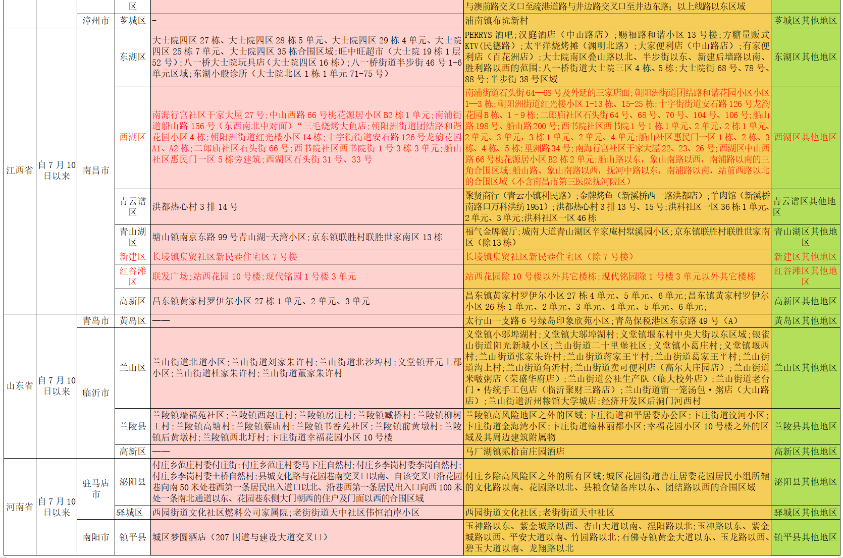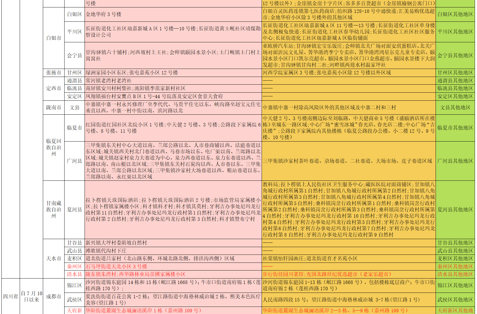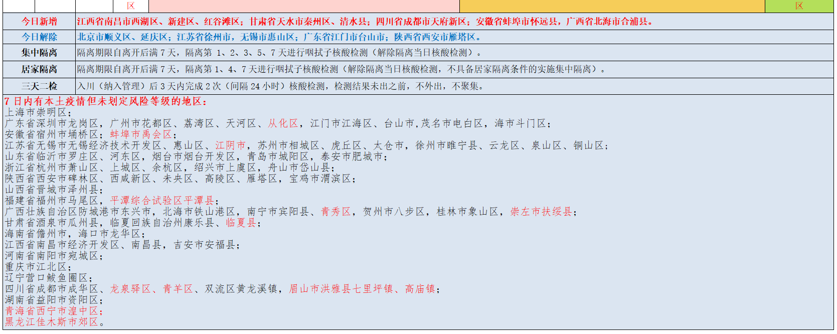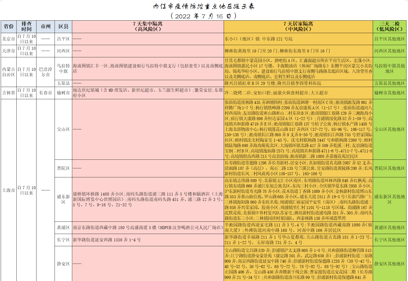 内江市疫情防控重点地区提示表(2022年7月16日)