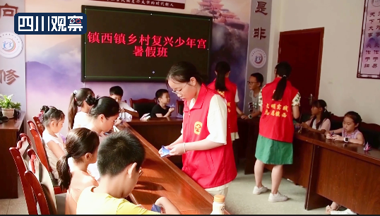 一大早,威远县镇西镇居民唐琴带着儿子刘俊杰来到镇上的乡村“复兴少年宫”参加暑期活动。为期半月的活动包含了体育运动、阅读分享、趣味英语等,让孩子在这里度过一个丰富多彩的假期。