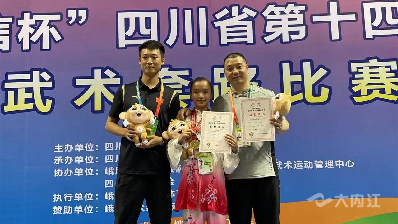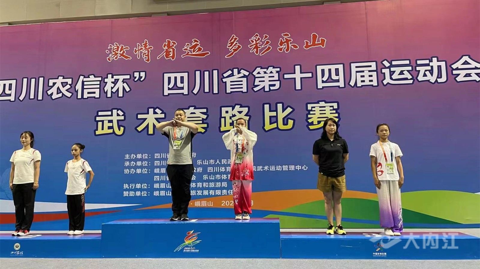 7月30日,在省第十四届运动会上,内江代表团运动员王露谕以女子乙组太极拳、太极剑、八法五步总分26.9分的成绩获得全能冠军。这是内江代表团在省第十四届运动会获得的第6块金牌,也是内江代表团在武术套路项目获得的第一块金牌。