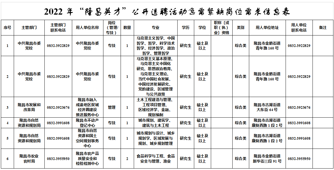 时间:2022-08-04 18:12:24 来源:内江人事考试网8月4日,江粉儿从内江人事考试网获悉,隆昌将开展2022年“隆昌英才”公开选聘活动,详情如下: