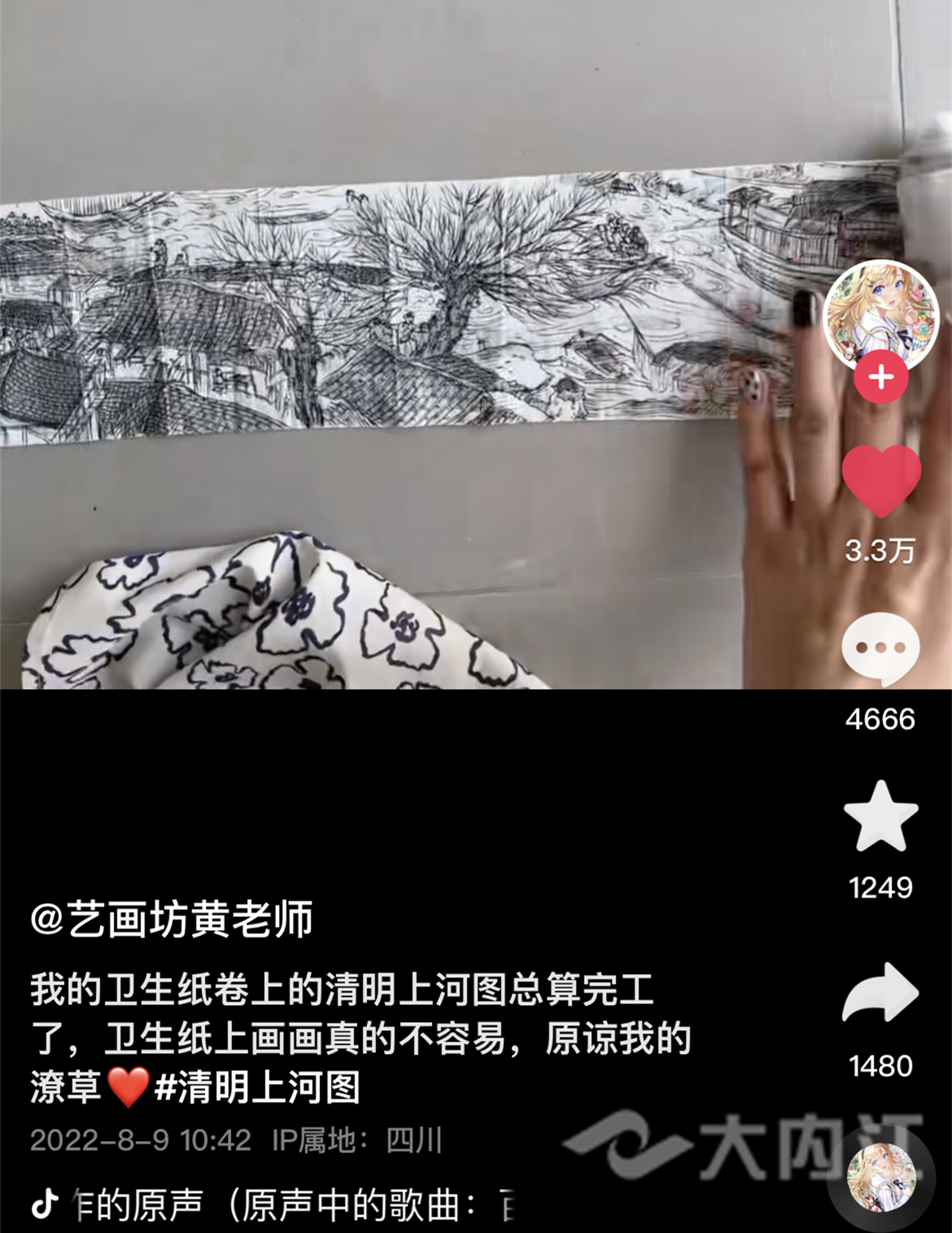 卫生纸上画出《清明上河图》,内江90后老师走红网络!