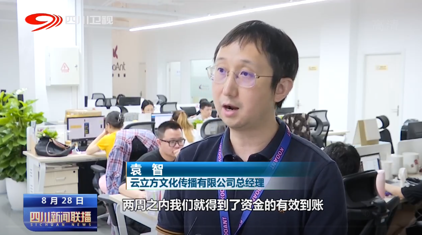 云立方文化传播有限公司总经理袁智:两周之内就得到了资金的有效到账,今年一年到期了之后又得到了有效的续贷,缓解了之后,我们主要是用在IP商业化的这个业务上面去,我们也在推进和三星堆的一些文创产品的合作。