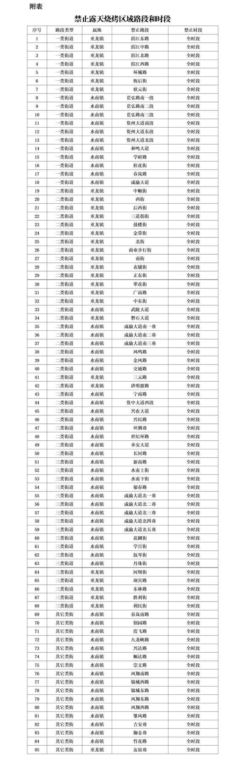 为进一步改善城市容貌秩序,巩固市容环境治理成果,营造清洁宜居生活环境,根据《中华人民共和国大气污染防治法》《四川省城乡环境综合治理条例》《四川省<中华人民共和国大气污染防治法>实施办法》等有关法律法规规定,现就划定我县禁止露天烧烤区域有关事项通告如下: