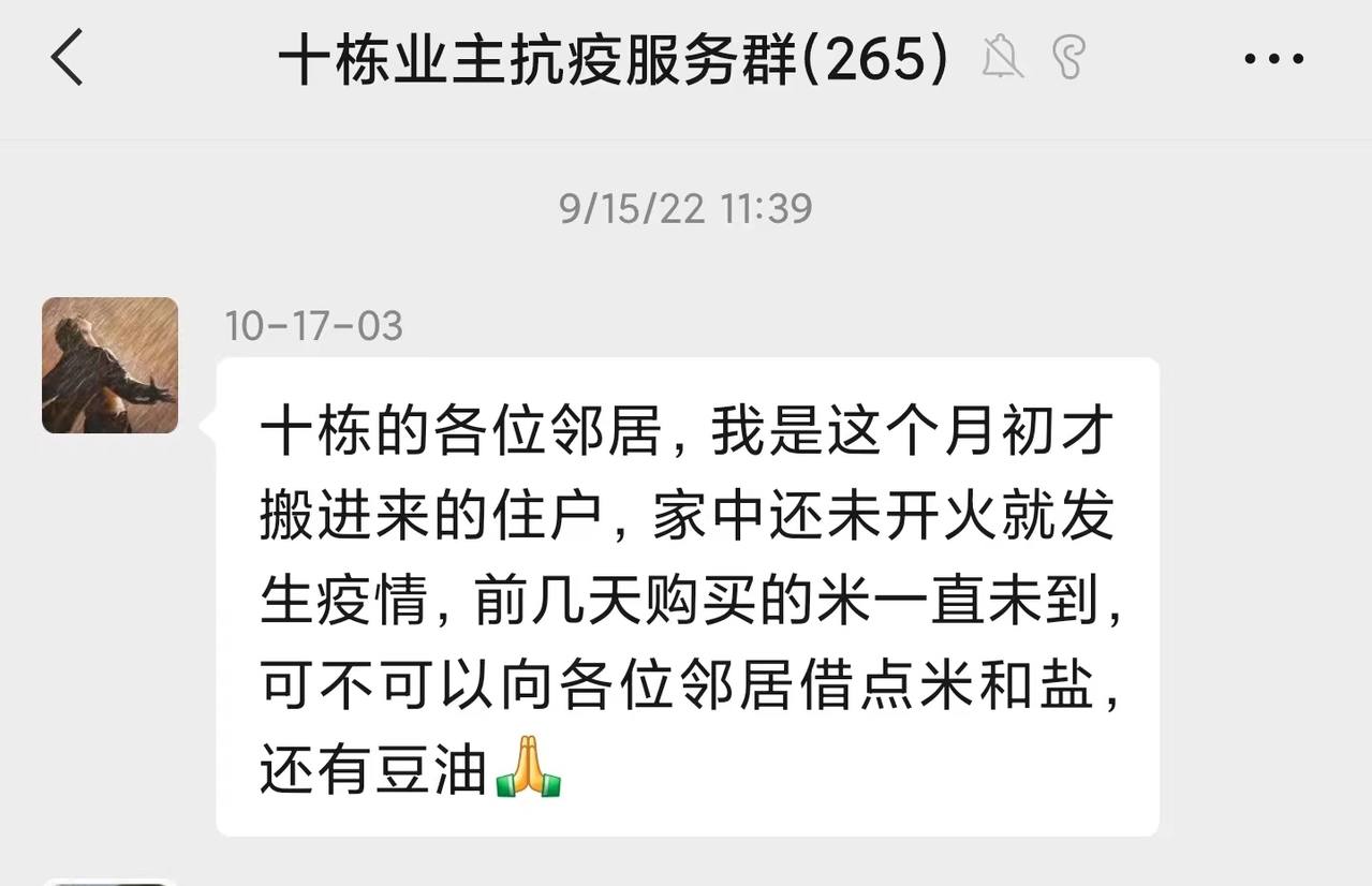 “各位邻居,我是这个月初刚搬来,家中未开火就发生疫情……向各位邻居借点米和盐。”