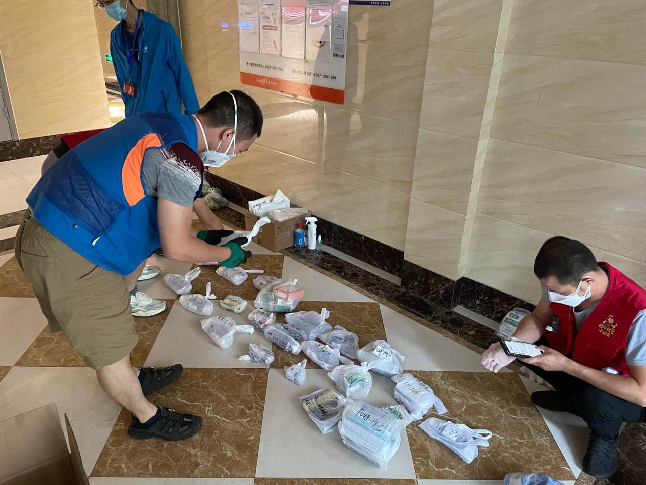 汉安天地小区属于高风险区,各楼栋施行封闭管理,面对邻居们的生活困难,居住在汉安天地10栋的业主自发组建了一支8人的志愿者队伍(其中7名党员)。志愿者们每天帮邻居领取物资并送到家中、配合医务人员组织邻居进行核酸检测、协助透析病人离开小区就医、为独居老人维修助听器、微信群里解答住户各种疑问、深夜仍在统计居民急需的物资……