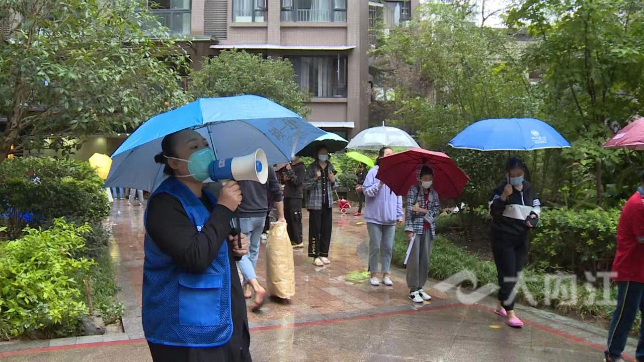 在东兴区紫金学府小区,居民们按照通知错峰下楼做核酸,采样完成后,戴好口罩,迅速离开采样现场,整个核酸检测工作高效、有序。