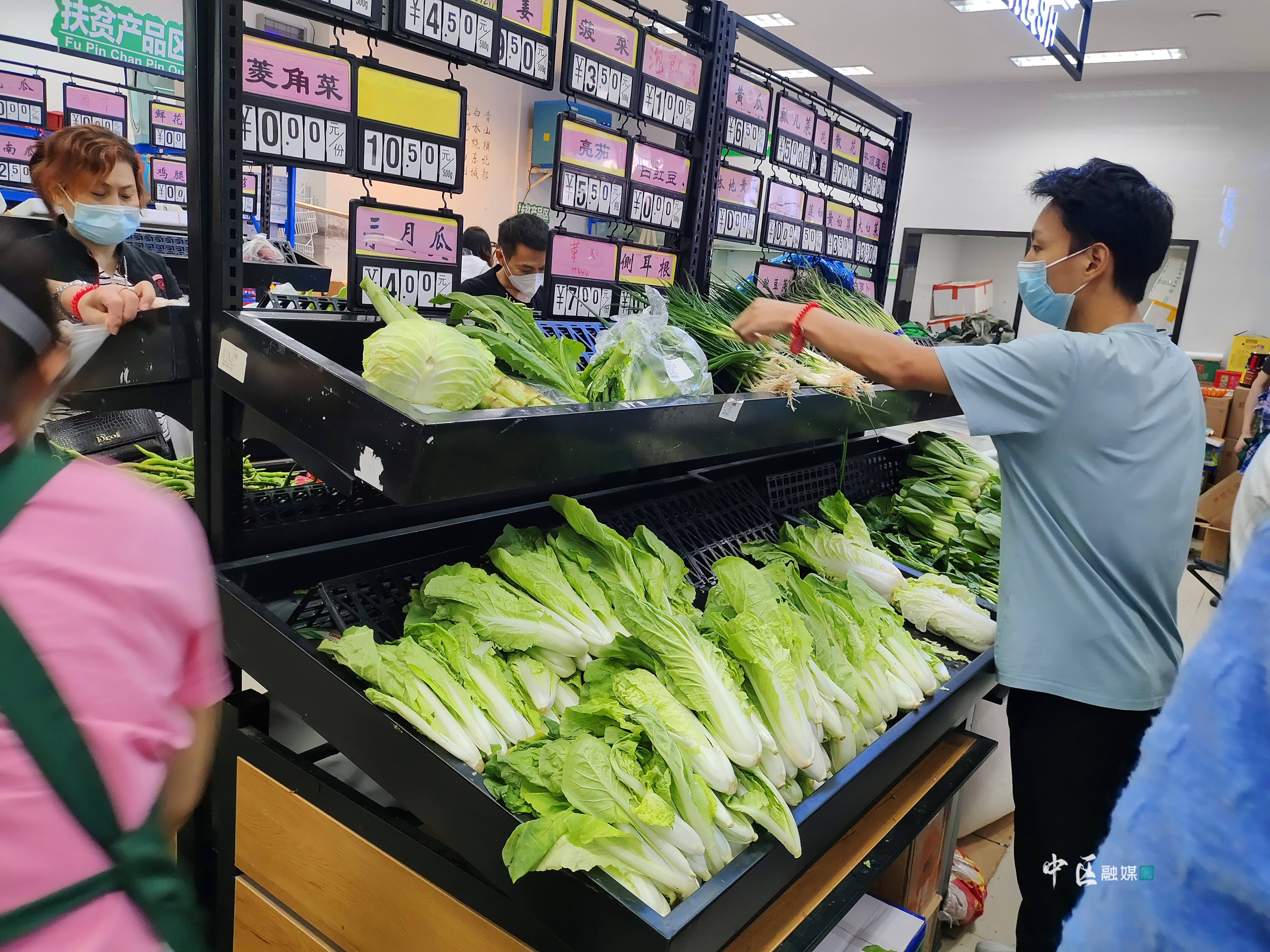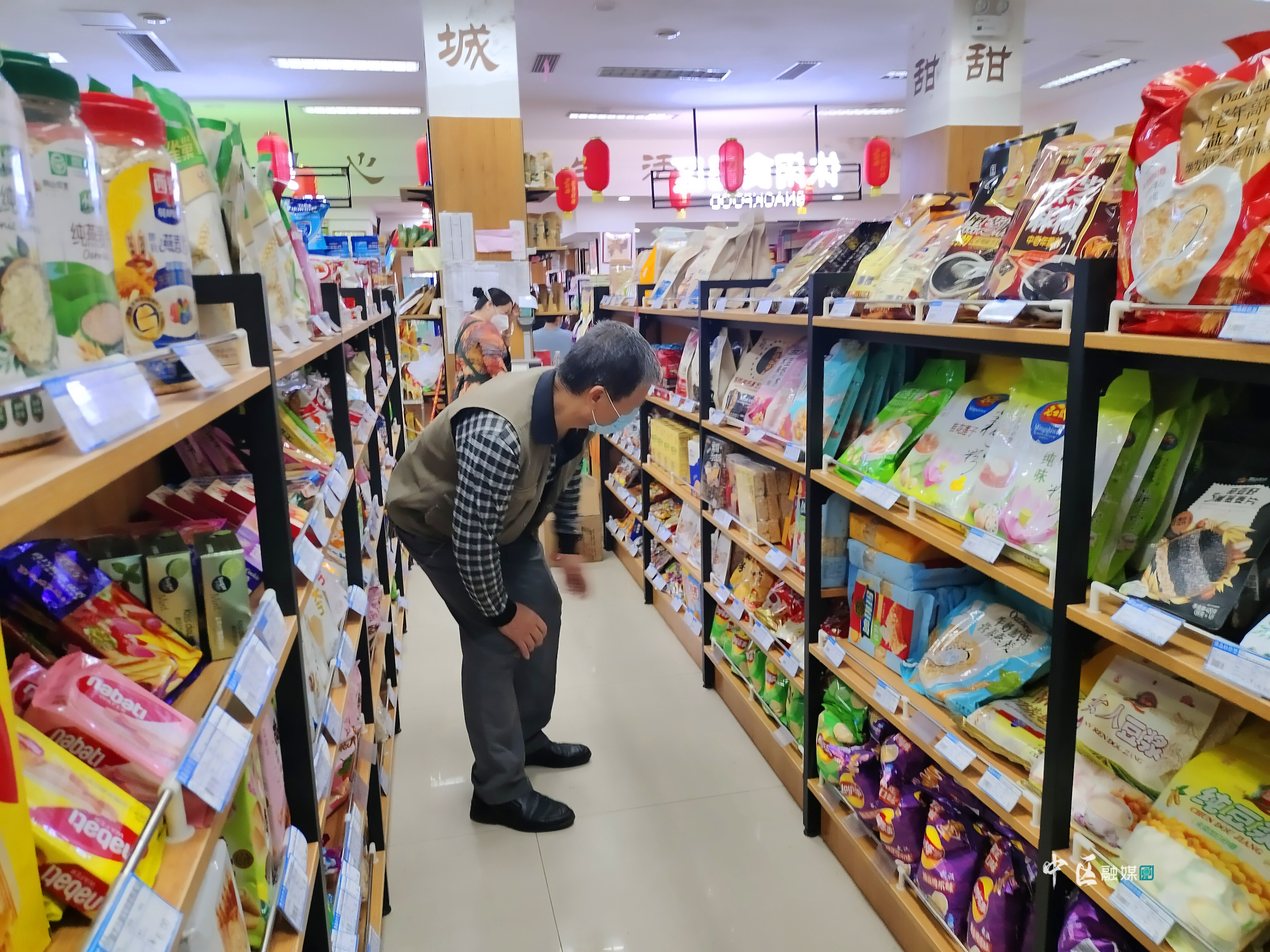 还没走近市中区甜城乡邻超市,就听到人民路的街口循环播报着温馨提示:“请各位居民有序购物,禁止扎堆,进出扫码……”超市恢复线下购物后,来往顾客络绎不绝,排成长龙,缓缓解封的城市开始回归阔别已久的“烟火气”。在甜城乡邻超市入口处,江粉儿看到超市工作人员正挨个查验所有顾客健康码、行程码、48小时内核酸检测阴性证明,并要求客户扫描场所码。针对没有智能手机的老年群众,超市工作人员为其登记相关购物需求,代为选购。走进超市,里面琳琅满目的商品摆满了货架,日用品、文具用品、零食、调味料、生鲜食材、蔬菜水果等应有尽有,令人目不暇接。