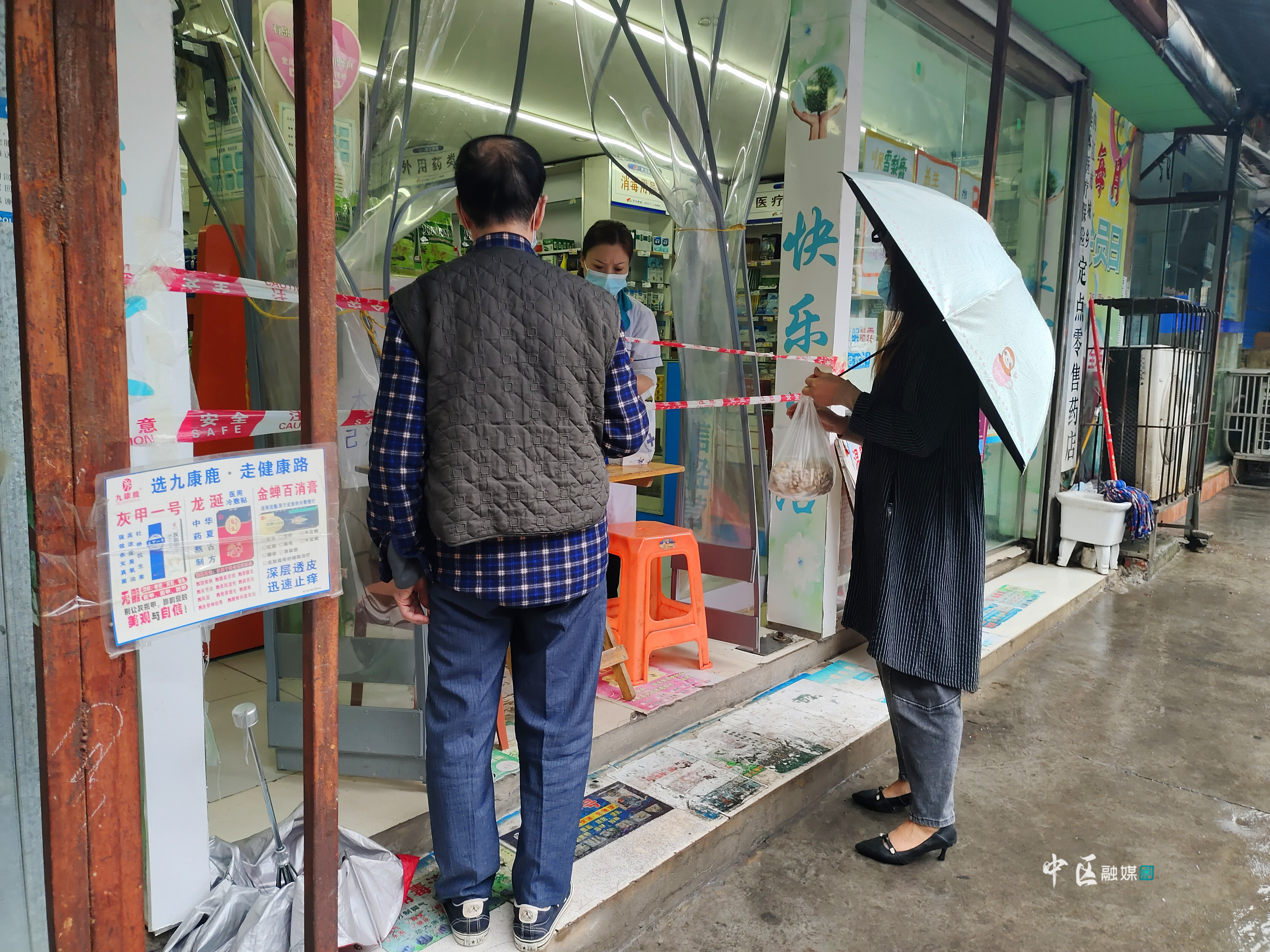 随后,江粉儿来到位于阴家巷的内江天力药业连锁有限公司三十五店看到,一位戴着口罩的顾客正站在药店门口等候,“麻烦您先扫一下场所码,然后我再为您拿药”,在查验完健康码、场所码、48小时核酸检测阴性证明后,工作人员开始为顾客挑拣药品,并完成整个支付流程。顾客离开后,工作人员拿起桌面上的酒精喷洒消毒。“我们开业前的第一件事就是消毒,在完成全面的消杀工作后,才会开门营业,顾客购物后,我们都会再次消毒,下班前的消毒工作也是必不可少的。”