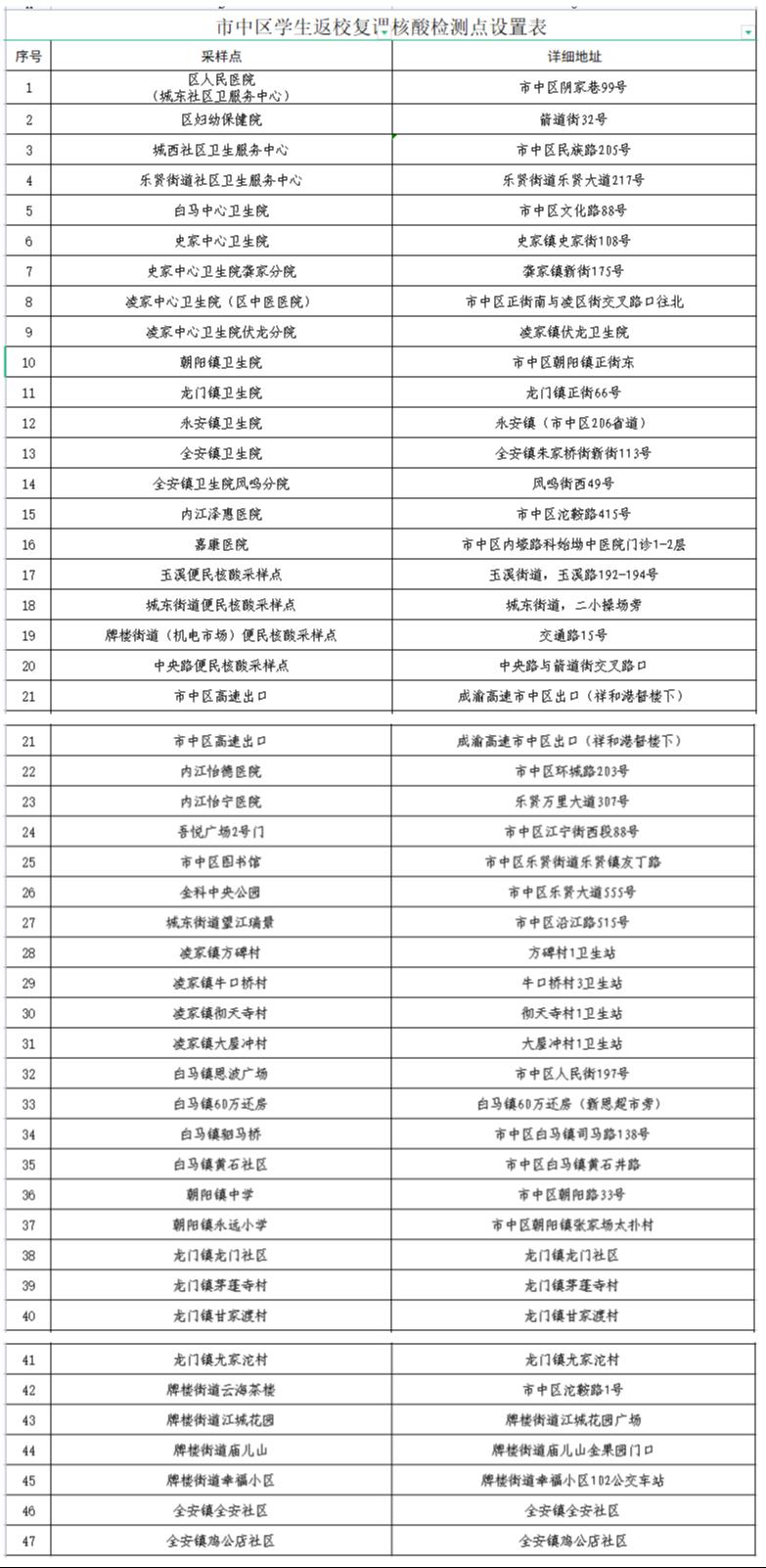 转需!市中区公布学生返校复课核酸检测点