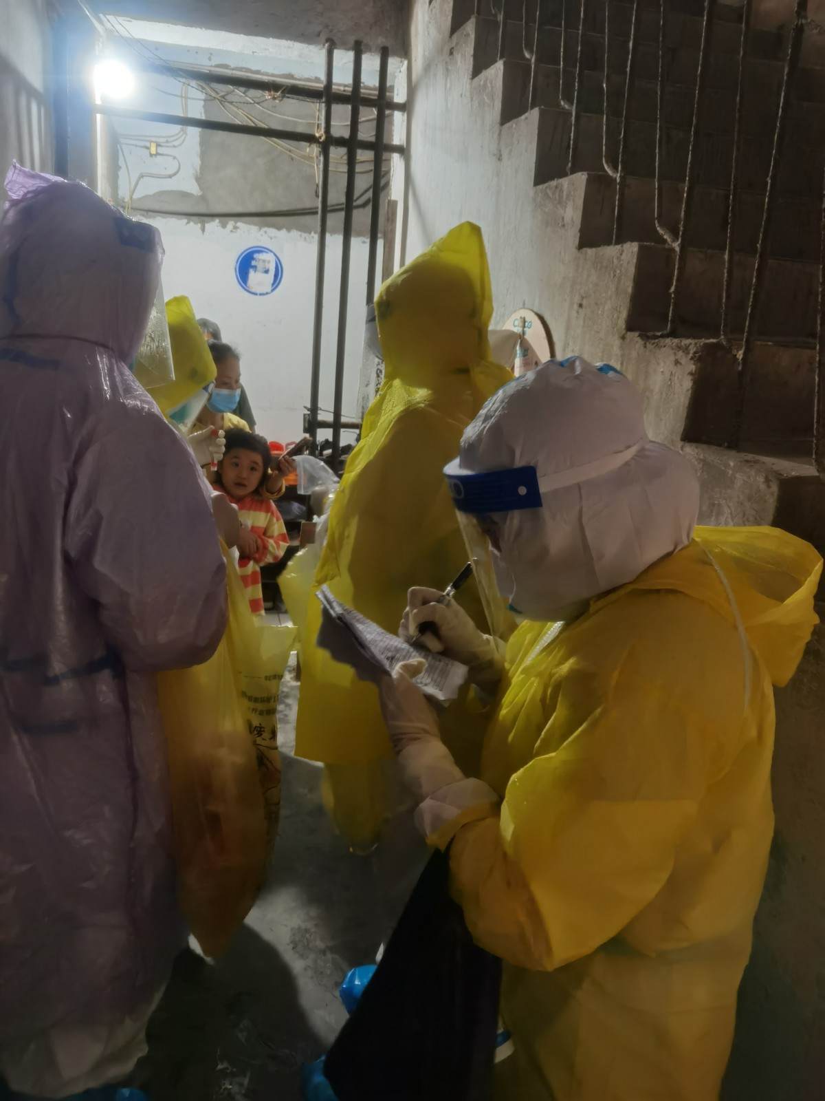 9月16日早上7点,只睡了5个小时的李丽莎便接到了第一项任务,统计新华路西一巷区域内的人员数量、物资需求等情况,为打好疫情防控“社会面清零”集中行动打好基础。收到任务后,李丽莎和同事各带领一个小组开展入户调查工作。走在错综复杂的老旧小区里,穿梭在老旧的居民楼里,来不及欣赏岁月的沉淀,李丽莎一栋楼一栋楼地查,一层楼一层楼地爬,挨家挨户地问,逐字逐句地写,一心只想完成任务。防护服里的湿热、面罩下的汗水、爬上爬下的酸痛......她没有叫苦,一想到组织和群众的期望,就又浑身充满斗志,势有不破楼兰终不还的气势。李丽莎从早上7点一直忙到晚上8点,13个小时的工作时间里,没有喝水,只吃了一餐饭,期间一度连防护面罩脱落了都没有发现,甚至差点晕倒,还好在大家的不懈努力下,仅用了短短10余个小时便“不漏一户、不漏一人”地完成了辖区400多户居民第一轮精准核查,为接下来的攻坚工作奠定了坚实的基础。