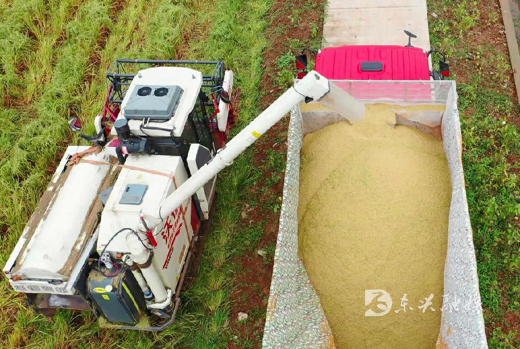 据了解,为确保工作人员在疫情期间的安全,该合作社在做好疫情防控措施下,租用收割机和运输车辆,最大限度减少人员现场工作,防止因人员密集可能造成的交叉感染。目前,设备设施已全部投入使用,预计三天内可完成收割工作,预计可收获水稻500余吨。