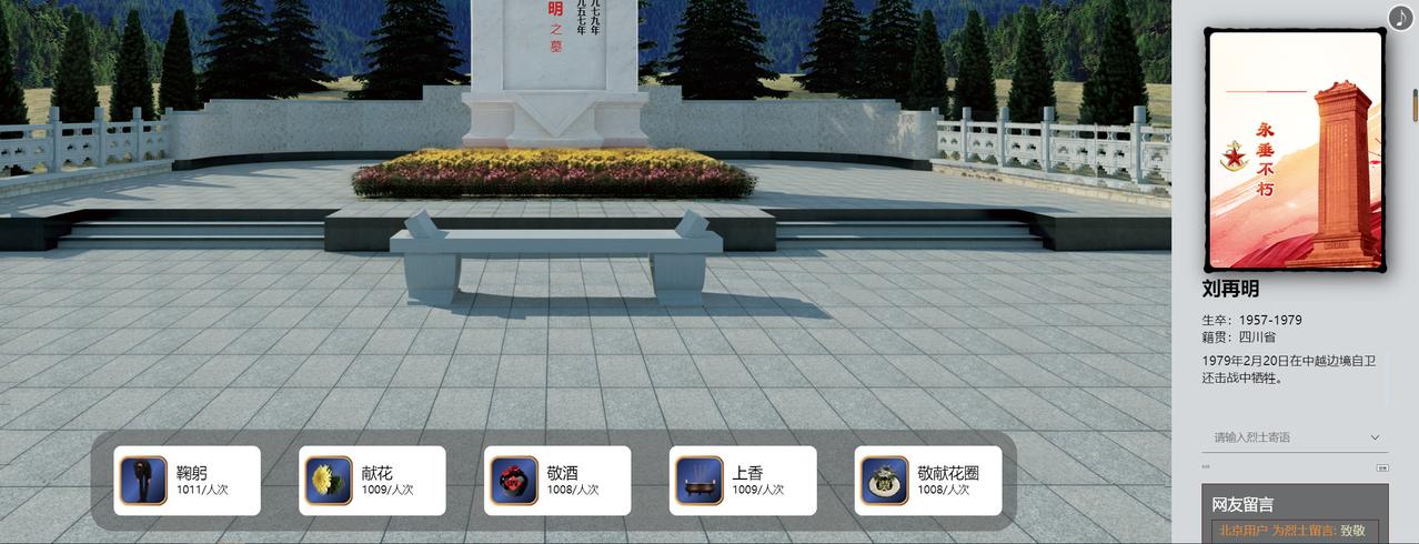 选择为烈士“鞠躬、献花、敬献花圈”等,也可在右侧输入留言。