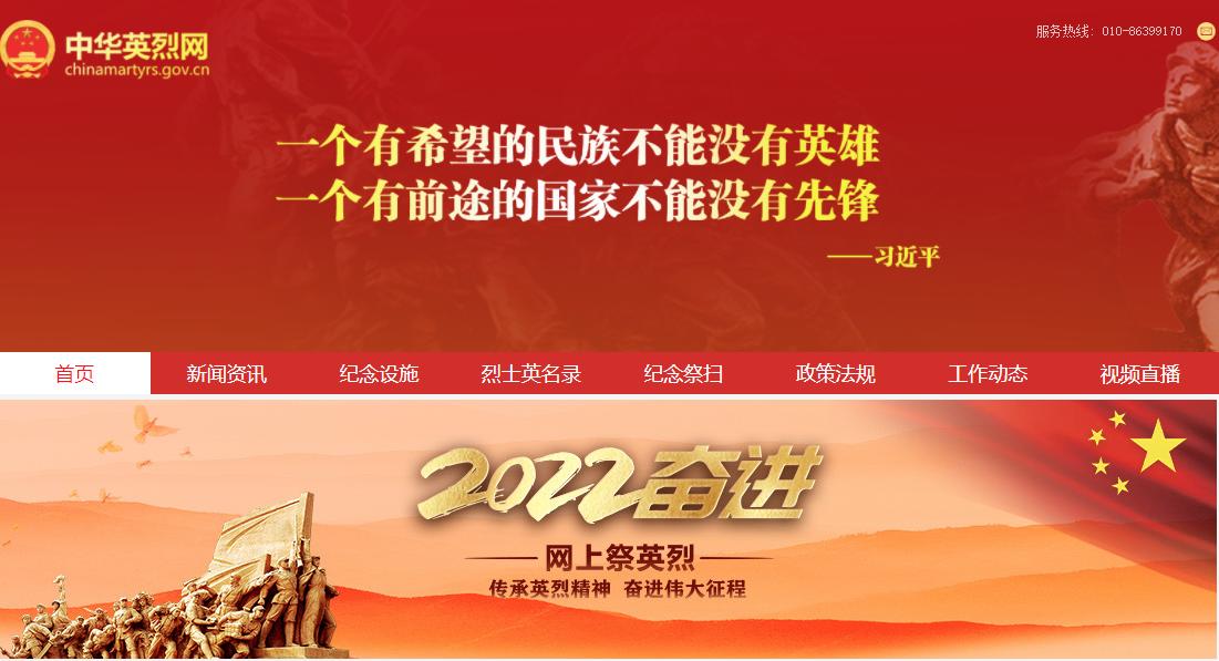 登陆http://www.chinamartyrs.gov.cn/(中华英烈网),点击“2022奋进·网上祭英烈”。