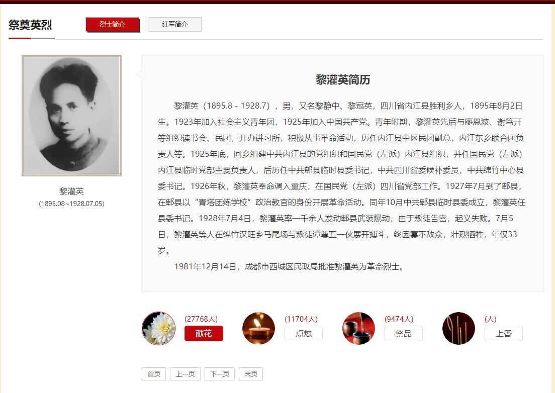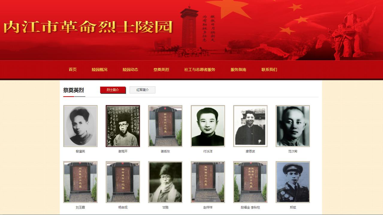 登陆内江市革命烈士陵园官网,点击“祭奠英烈”。