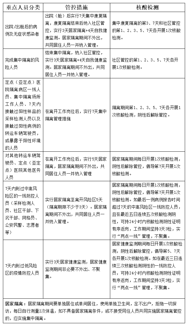 在全市上下共同努力下,疫情得到有效控制,防控形势稳定向好,患者陆续出院,风险人员逐步返家,一线防控力量逐步返岗,为科学有序做好返回人员的管控,市疾控中心对相关政策进行梳理汇总: