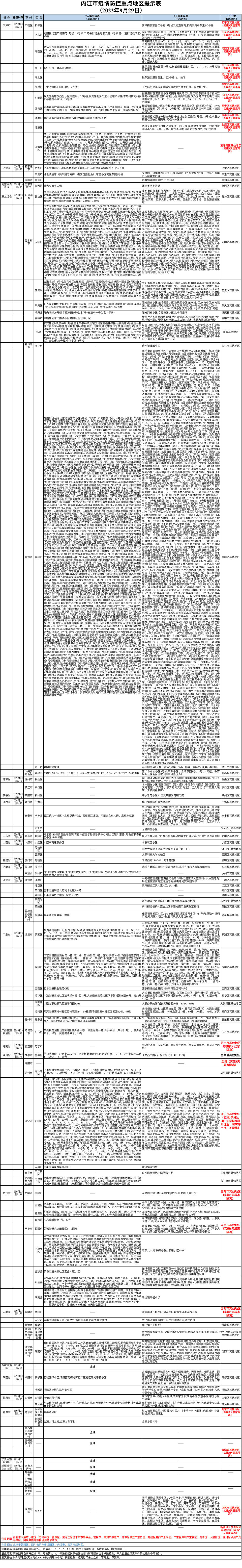 内江市疫情防控重点地区提示表(2022年9月29日)