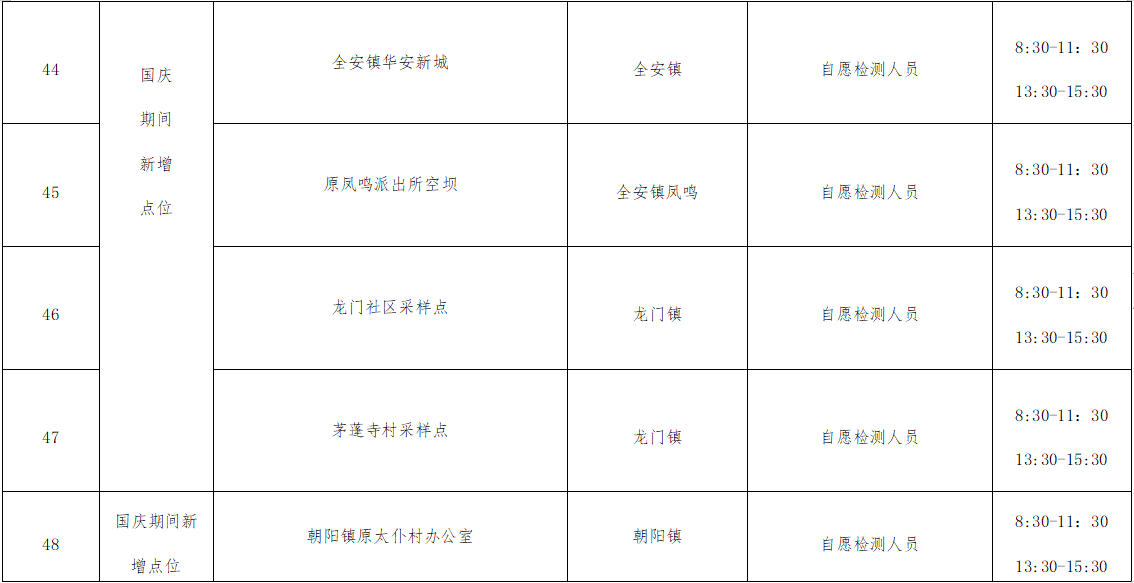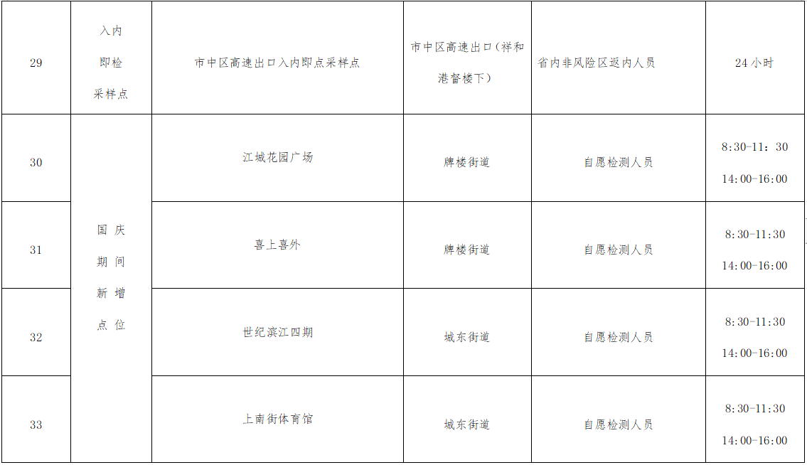 (六)国庆期间新增采样点检测方式为混检;如需进行单检,请前往医疗机构检测点进行单管自费检测。