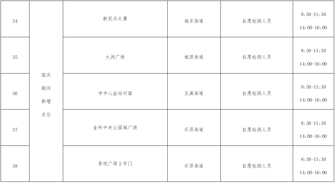 采样地点和开放时间见下图。后期将根据需要和疫情形势变化动态调整,请及时关注采样点公布信息。