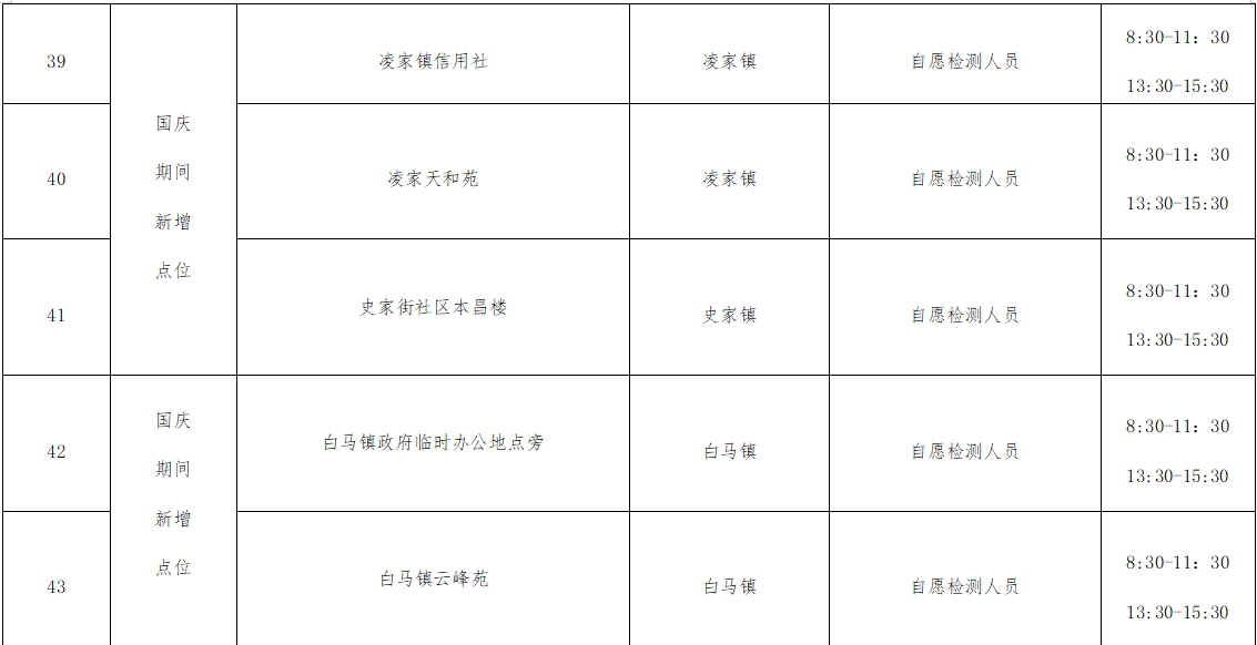 便民核酸采样点通告
