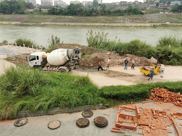 记者在重龙镇沱江北岸亲水景观平台看到,资中县城区污水处理厂配套截污干管工程建设项目(一期)正在有序推进,工人们正在管道安装及铺设回填同步进行,新建截污干管上游从船城首座起,至下游五行镇江柱止,长度约2.3公里,主干管管径为DN500及收集支管,收集沱江北岸城区范围内主要排污口,目前约完成总工程量的50%。