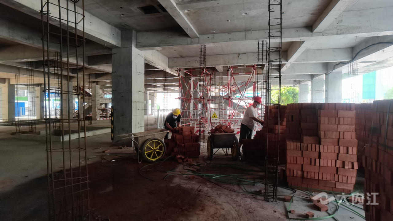 随后,记者在位于东兴区兴盛路的东兴区人民医院感染性疾病综合楼项目现场看到,工人们正忙碌地穿梭楼层之间,开展砌筑工作。