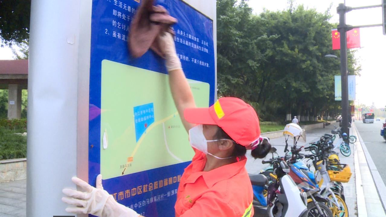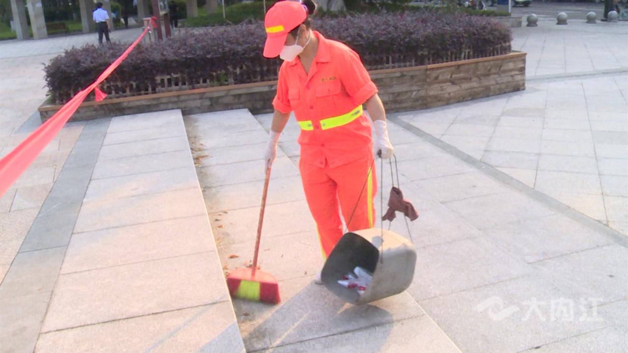 一大早,环卫工人邱华君早早地来到了自己负责的大洲广场路段,开启了一天的工作,清扫路面垃圾、清洁垃圾箱、擦拭引导牌,每个环节都一丝不苟。
