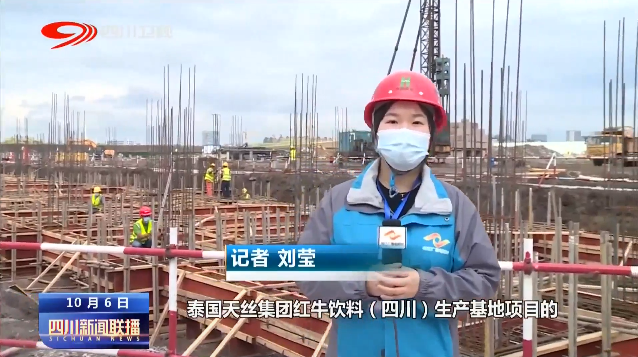 记者 刘莹:我现在是在泰国天丝集团红牛饮料(四川)生产基地项目的建设现场,在我身后工人们正在进行支模、混凝土浇筑等作业,全力以赴赶工期抢进度。