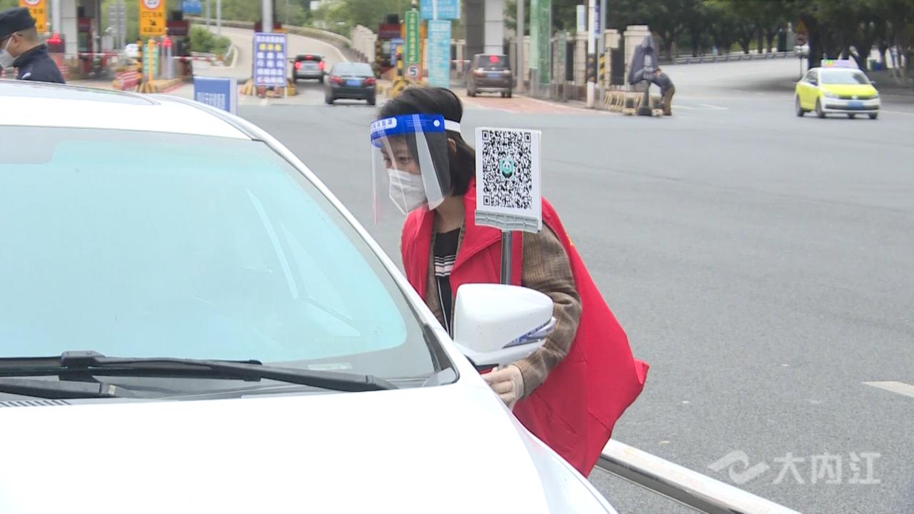 10月7日上午,记者在成渝高速市中区收费站看到,返程车流量明显增大,相关部门严格按照内江市疫情防控工作要求,认真做到“逢车必检、逢人必查”,工作人员在车流中手持二维码, 引导入城车辆扫码并核验车上人员的健康码、行程卡及核酸检测结果等, 确保入城车辆安全快速通行。