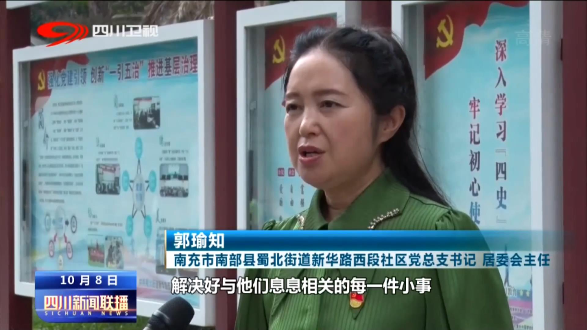南充市南部县蜀北街道新华路西段社区党总支书记、居委会主任 郭瑜知:群众的事无小事,解决好与他们息息相关的每一件小事,让群众满意,才能促进社区和谐,这本身就是我们的工作职责。