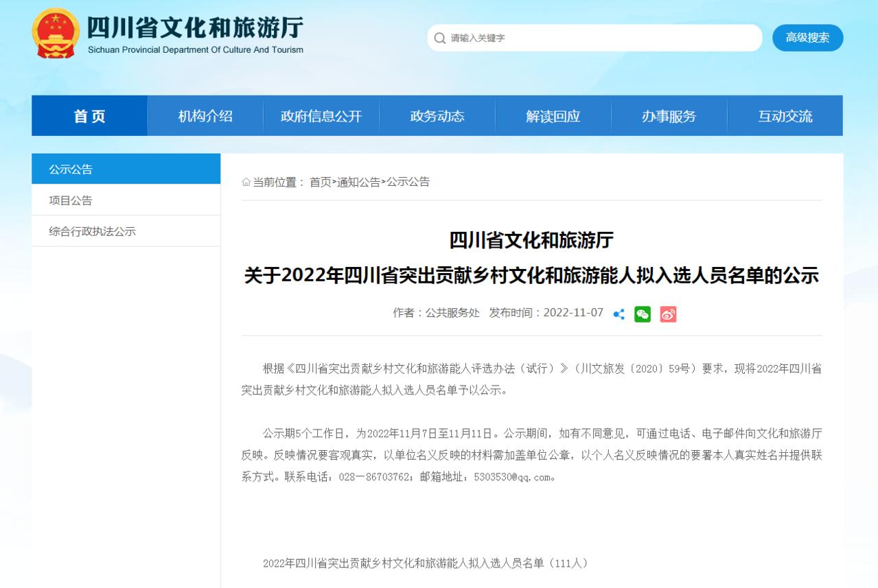 据了解,四川省文旅厅根据《四川省突出贡献乡村文化和旅游能人评选办法(试行)》(川文旅发〔2020〕59号)要求,开展2022年四川省突出贡献乡村文化和旅游能人评选活动,旨在把扎根乡村、丰富基层群众精神文化生活、保护传承乡村文化、促进旅游资源开发、繁荣乡村文旅市场的带头人,培育成为四川省乡村文化和旅游能人,打造一批有突出贡献的乡村文化和旅游能人,为促进乡村振兴、发展乡村旅游提供重要的人才支撑。