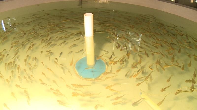 近日,记者在位于资中县银山镇金紫铺村的陆基工厂化水产养殖基地内看到,两台水轮机正轮流转动。通过使用该设备,基地可以实现24小时不停循环供氧,确保达到高密度、零换水、零用药养殖的目的,一年可养殖成鱼20万斤左右、鱼苗300万尾左右。