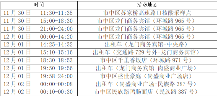 为方便市民排查风险轨迹,现将阳性感染者活动轨迹综合整理如下,请市民朋友们对照自查。如与以下活动轨迹有重叠,立即向村、社区和单位(或居住的酒店)报备,主动配合落实防控措施,如有瞒报将依法追究相关人员责任。
