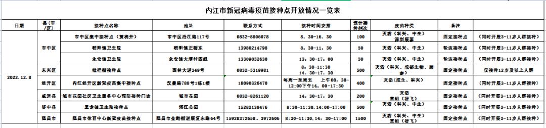 速看!12月8日内江市新冠病毒疫苗接种点公布