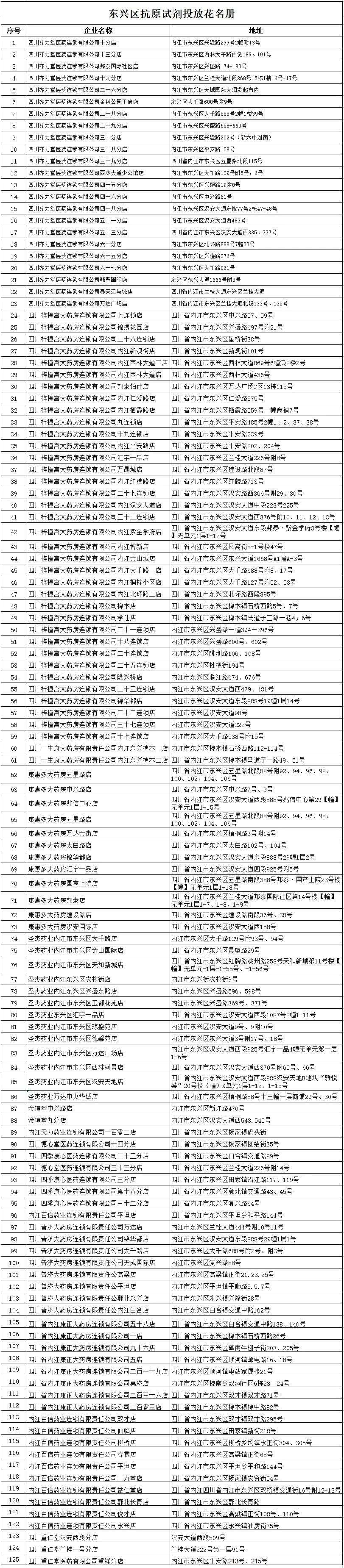 据了解,此次东兴区调拨的10万人份抗原试剂分别投放到各城镇药店。药店名单如下: