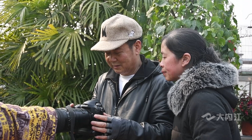 ▲佘志吴与妻子郭春梅正在拍摄叉尾太阳鸟