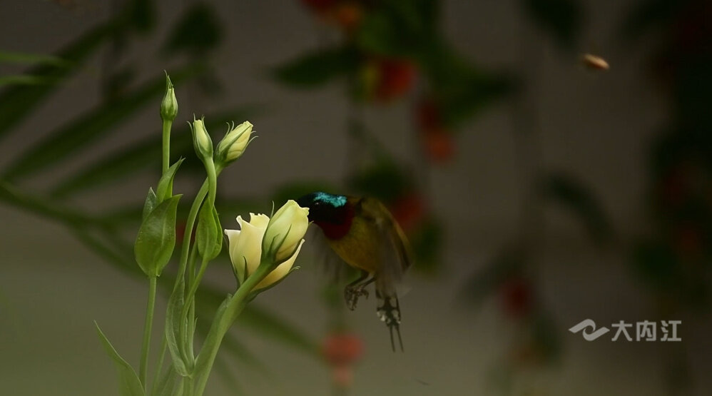 时间:2023-03-03 17:12:57 来源:内江广播电视台3月3日是“世界野生动植物日”,近年来随着人们生态意识的提高,在保护生态环境的同时,也将自家阳台打造得越来越美。家住内江市威远县的市民佘志吴家打造的楼顶花园,就吸引来了一只叉尾太阳鸟“做客”。