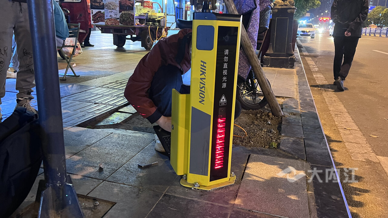 市交警支队秩序大队民警罗杰告诉记者,红色光线投射时,车辆在距人行横道100米外就能清晰观察到过街的行人,并提前避让;同时,醒目的光线也能够警醒行人注意通行安全。此外,设备发出的激光都控制在距离地面40厘米的空间内,定向照射在道路路面和路肩上,基本不会影响附近的商家和居民,并且设备还带有倾斜保护功能,如果设备因意外发生倾斜将会自动关闭。