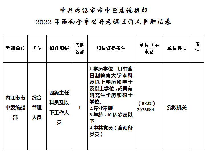 3.本次考调工作及未尽事宜由中共内江市市中区委统战部负责解释。