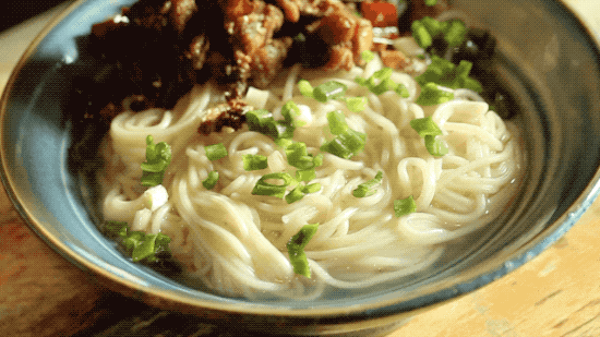 与西北的牛肉面不同,内江牛肉面选的是手工做的细碱面,看起虽细,但吃着特别韧,下锅煮个1分钟就能捞起。