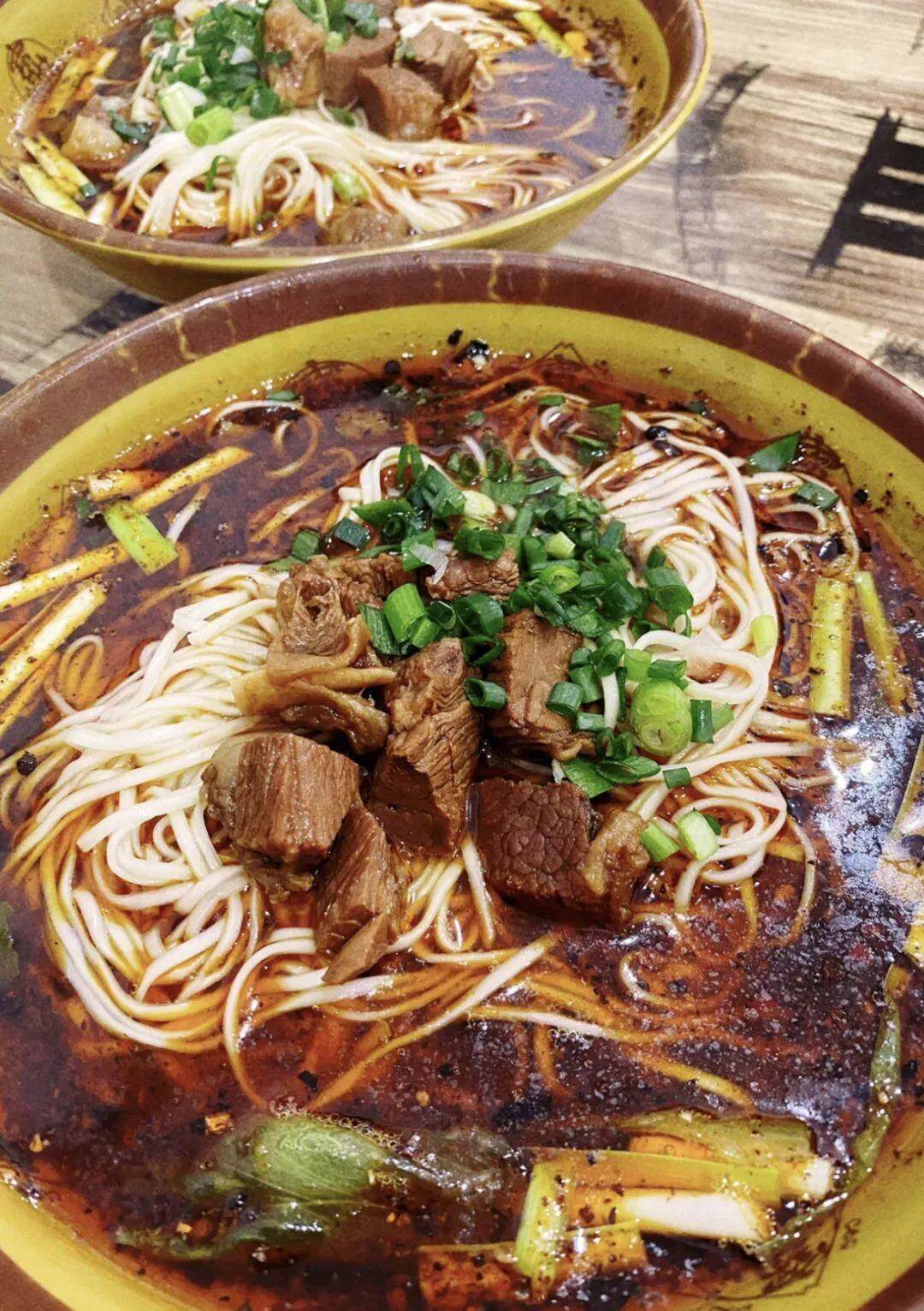 让成都人专程开车也要去吃的内江牛肉面是真的绝,每家店都很舍得用料,鲜红油亮的一碗,辣而鲜香。