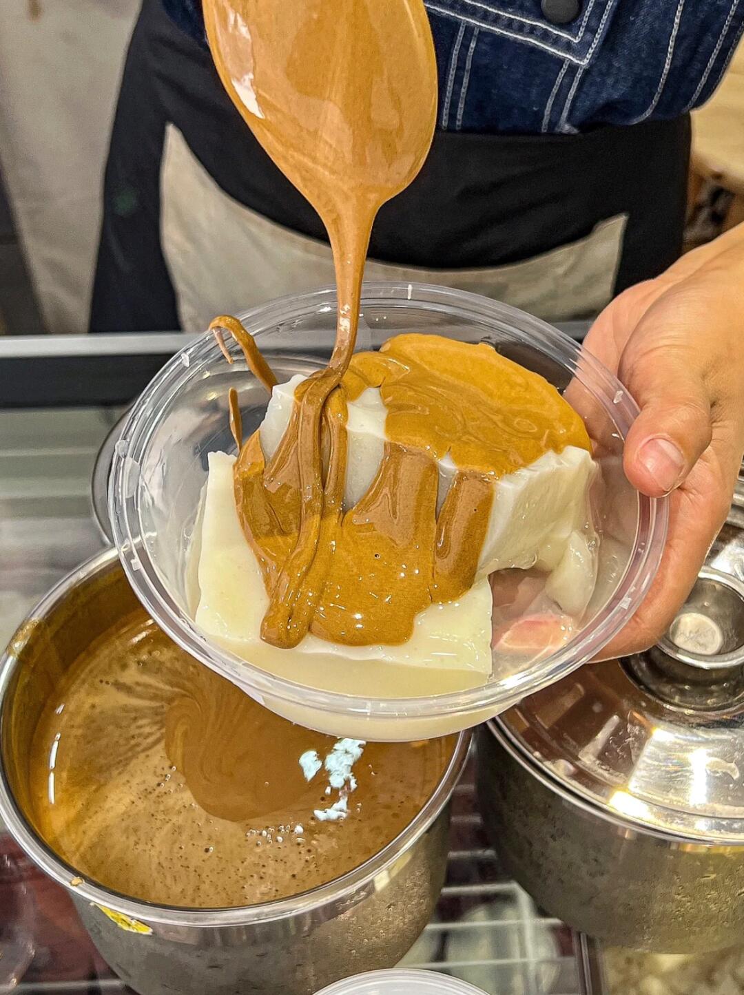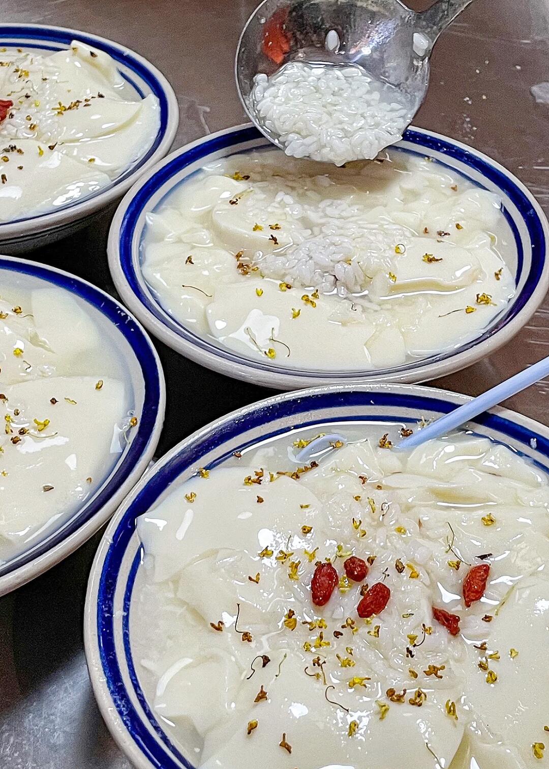 还有加了红枣、醪糟的冰醉豆花和加入现熬红糖的凉糕,入口即化,香甜浓稠,解暑又解腻。