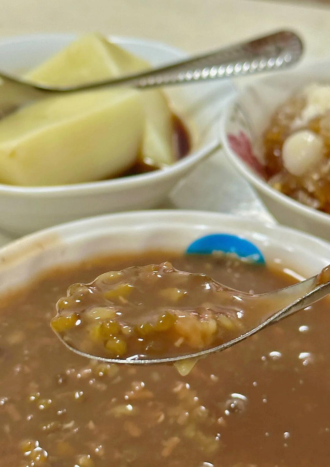 绿豆沙并不是用纯绿豆来做的,而是会加上些许糯米去熬,有冰、热选择,喝起来的口感更糯。