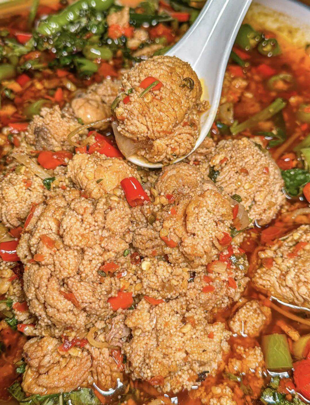 其中,必点的就是爆炒肚头、酸菜豆瓣汤、爆炒脆螺、鱼蛋等,这些菜的佐料非常足,像鲜椒、泡椒、葱花都是必放的。