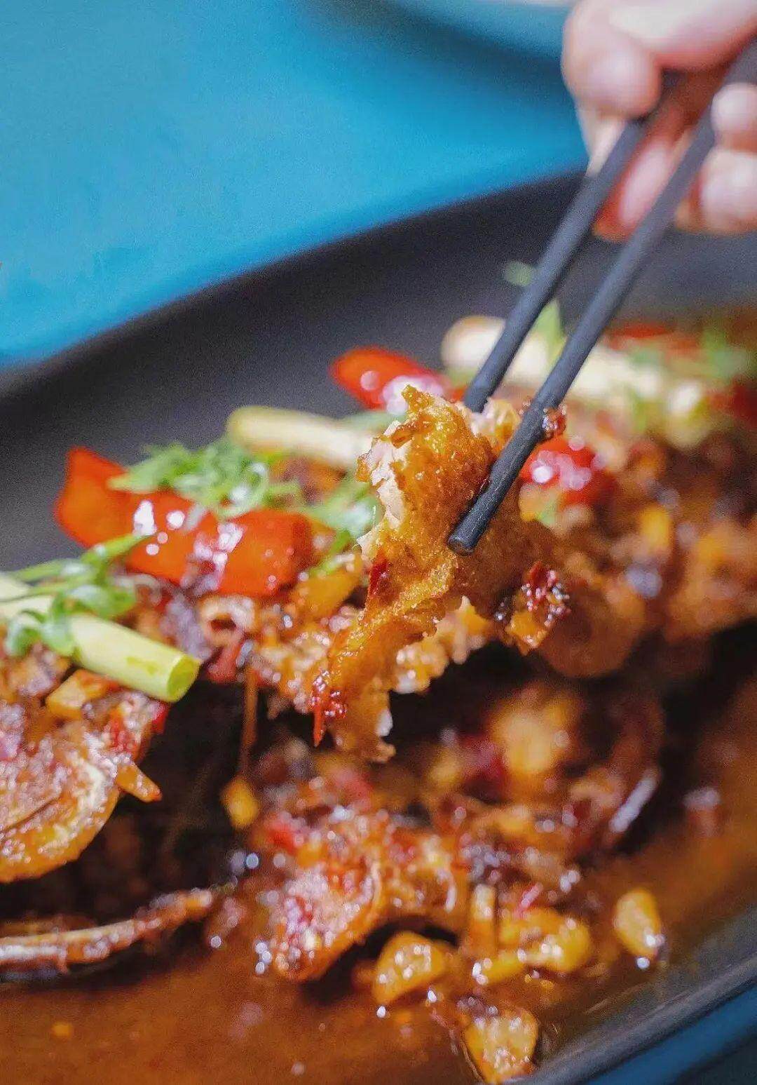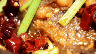 它用的是肉质细腻的鲤鱼,烧的时候,要放入豆瓣酱、花椒和辣椒,火候也得把控好,这样才能在收汁儿的时候保证鱼肉还是鲜嫩的。