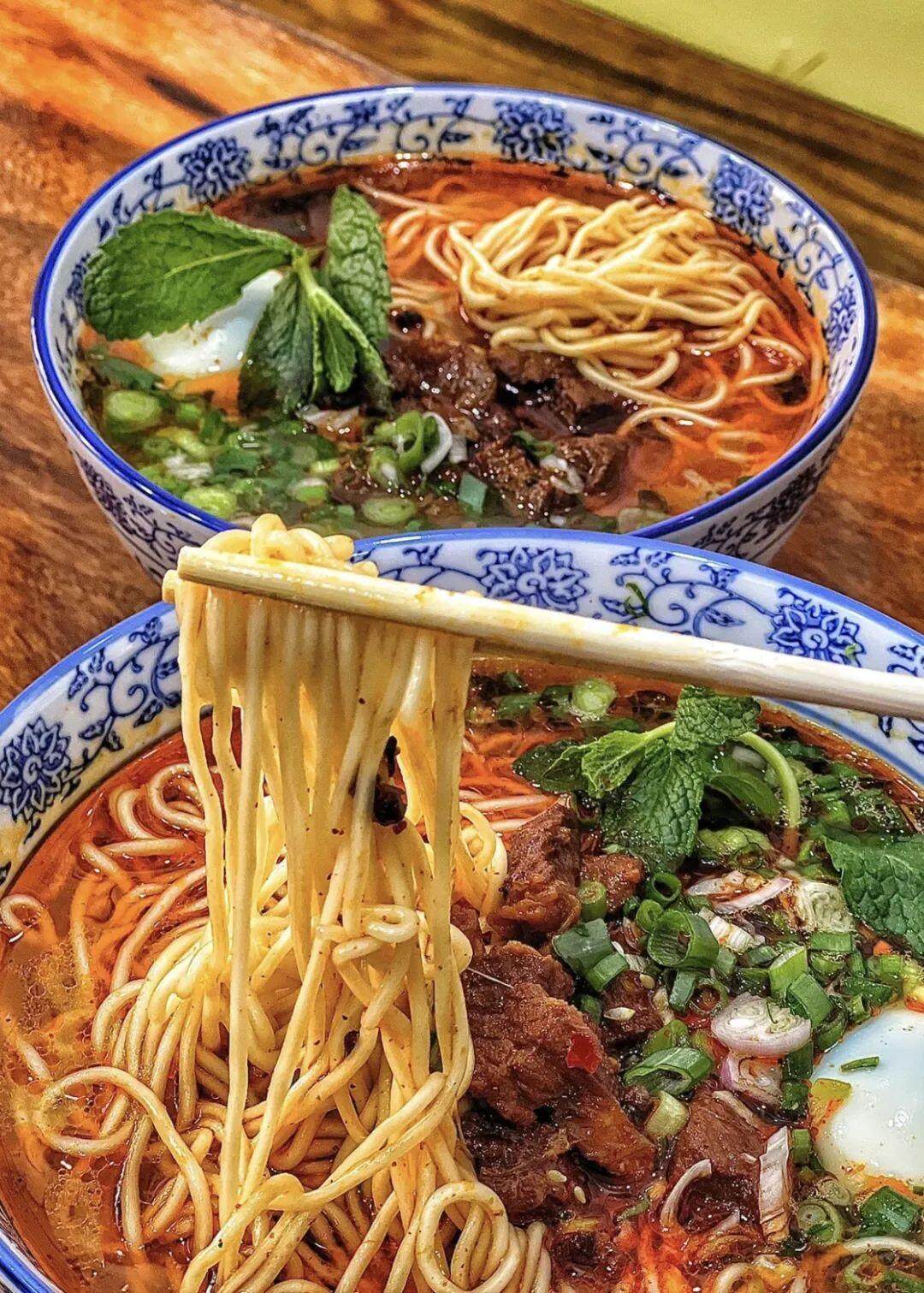 汤底和浇头也非常绝,先用现熬的猪骨浓汤来打底,然后用炖得软烂酥软的大块牛肉来当浇头。