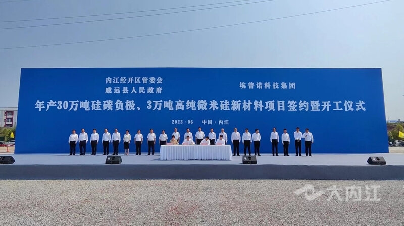 据了解,年产30万吨硅碳负极新材料项目总投入约105亿元,分两期建设,项目一期预计2024年8月建成投产,全部达产后将实现年产值约450亿元,年纳税约15亿元,这是埃普诺布局西南、进军成渝市场的重大举措,填补了内江电池负极材料产业领域的空白,也是内江近年来第一个单个投资超100亿元的制造业项目;年产3万吨高纯微米硅新材料项目可以为硅碳负极新材料项目配套,两个项目的建成投产,必将有力助推内江新材料和新能源产业迈上更高台阶。